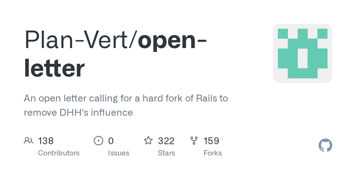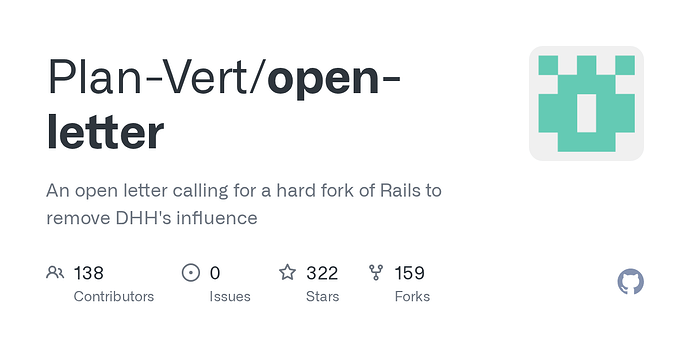 yeah a lot going on for ruby right now! theres also this open letter to oust DHH from being Rails maintainer due to his increasingly fascist views (i’ve signed it)